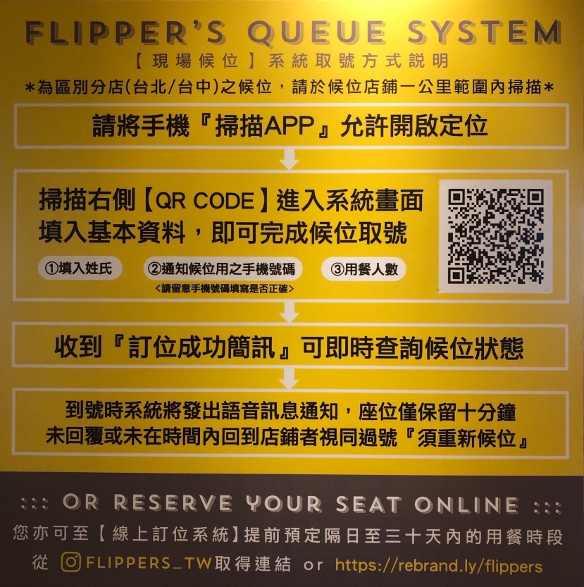 幸好,現在的訂位系統很進步了,只要事先掃描QR code 進行登錄,就可以輕鬆預訂位子。搞定之後,來個好整以暇的逛街,就可以免除排隊的煩惱囉!
